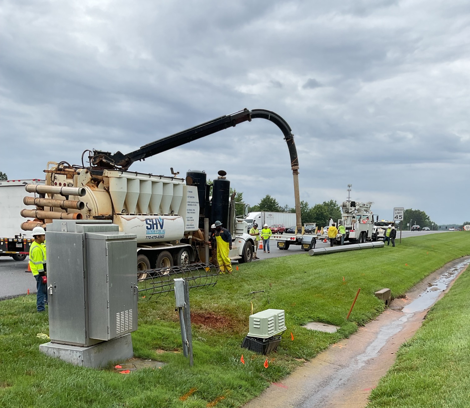 SHV offers a diverse range of complementary service capabilities, including hydro excavation, pipe cleaning, CCTV inspection, back fill, potholing, utility exposure, traffic control, pond cleaning, vault cleaning, lift station services, manhole rehabilitation, epoxy coatings, and lining. We service a diverse array of customers, including municipalities, plumbing and electrical contractors, water treatment facilities, construction and grading contractors,data centers, gas pipelines, HOAs, colleges, pipe companies, the DOT, and many more.